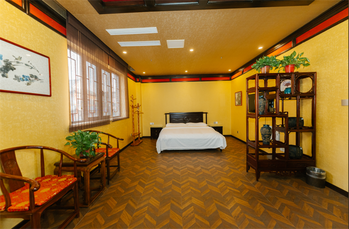 “福街·民宿”位于福街街區(qū)建筑頂層,獨(dú)享清幽,每棟民宿或以“五福同慶”為主題,或以“遼河風(fēng)情”為主題,現(xiàn)有“四館六院”特色顯著,內(nèi)部格局設(shè)計(jì)優(yōu)秀,古建筑風(fēng)格與現(xiàn)代客房設(shè)施高度契合。蒹葭館、紅海館內(nèi)紅灘綠葦閃影期間,匯集了遼河口特色地域風(fēng)情;黃旗驛館古典華貴,大氣磅礴,一副皇家氣派;轟趴館專為年輕人設(shè)計(jì),現(xiàn)代前衛(wèi)、不拘一格,是周末聚會(huì)的絕佳選擇。 “承福院”以福文化為主題、“授祿院”以祿文化為主題、“延壽院”以壽文化為主題、“雙禧院”以禧文化為主題、“潤財(cái)院”以財(cái)文化為主題。“福街·民宿”既是民宿,也是“名宿”,是盤錦地區(qū)高端特色文化主題民宿的代表。